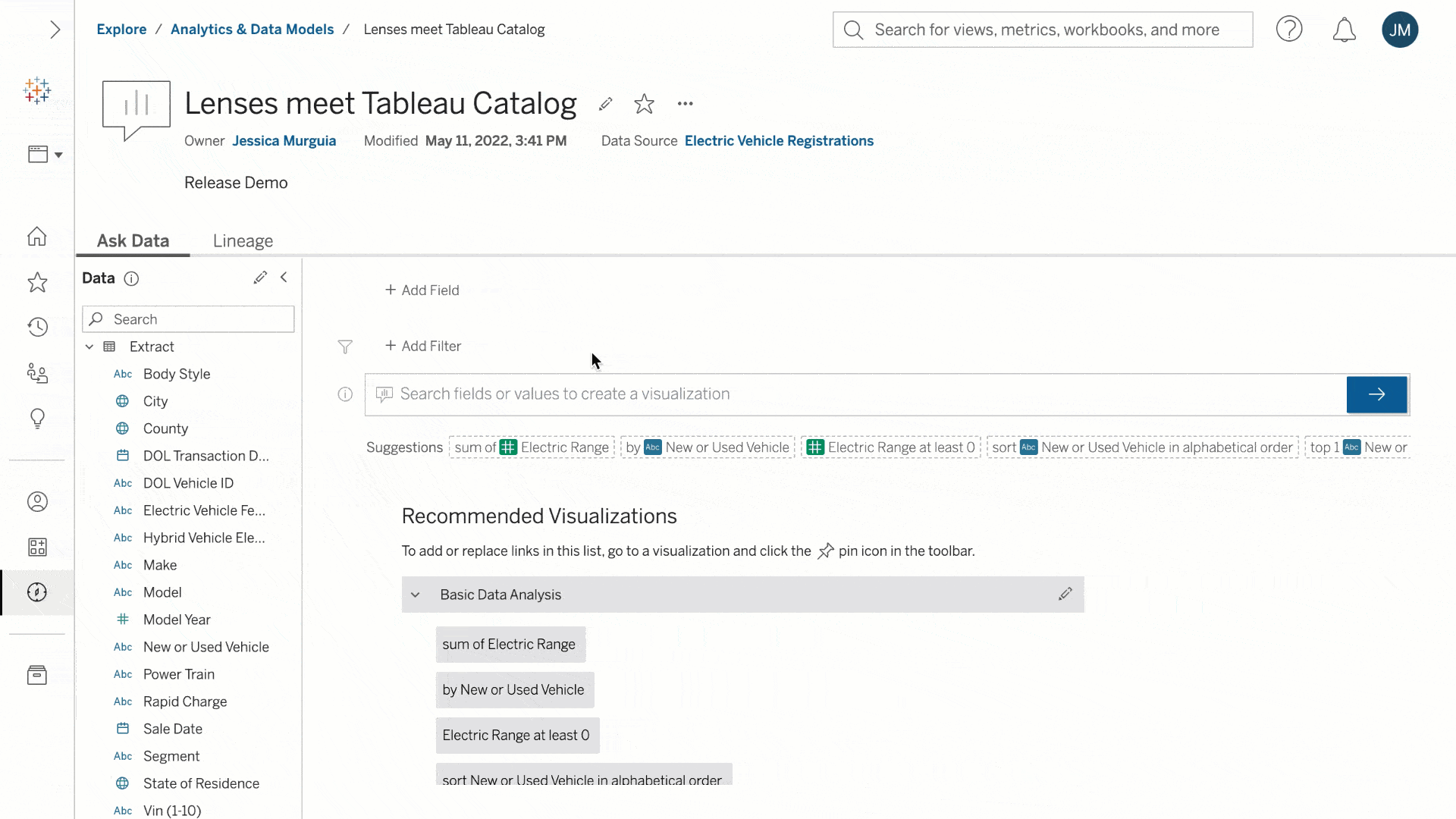 Available today Explain Data, Tableau Catalog, and Tableau Server