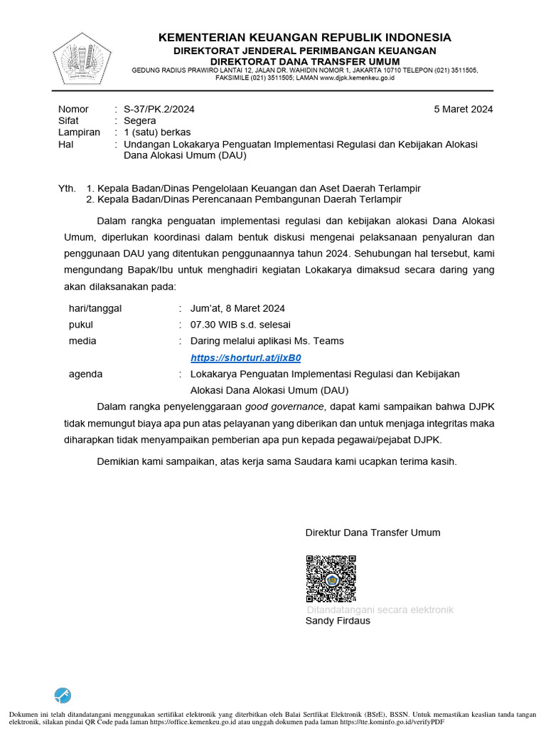 S37 Undangan Lokakarya Penguatan Implementasi Regulasi Dan Kebijakan