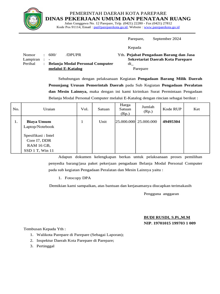 Permohonan EKatalog Pengadaan Laptop (DAU) PDF