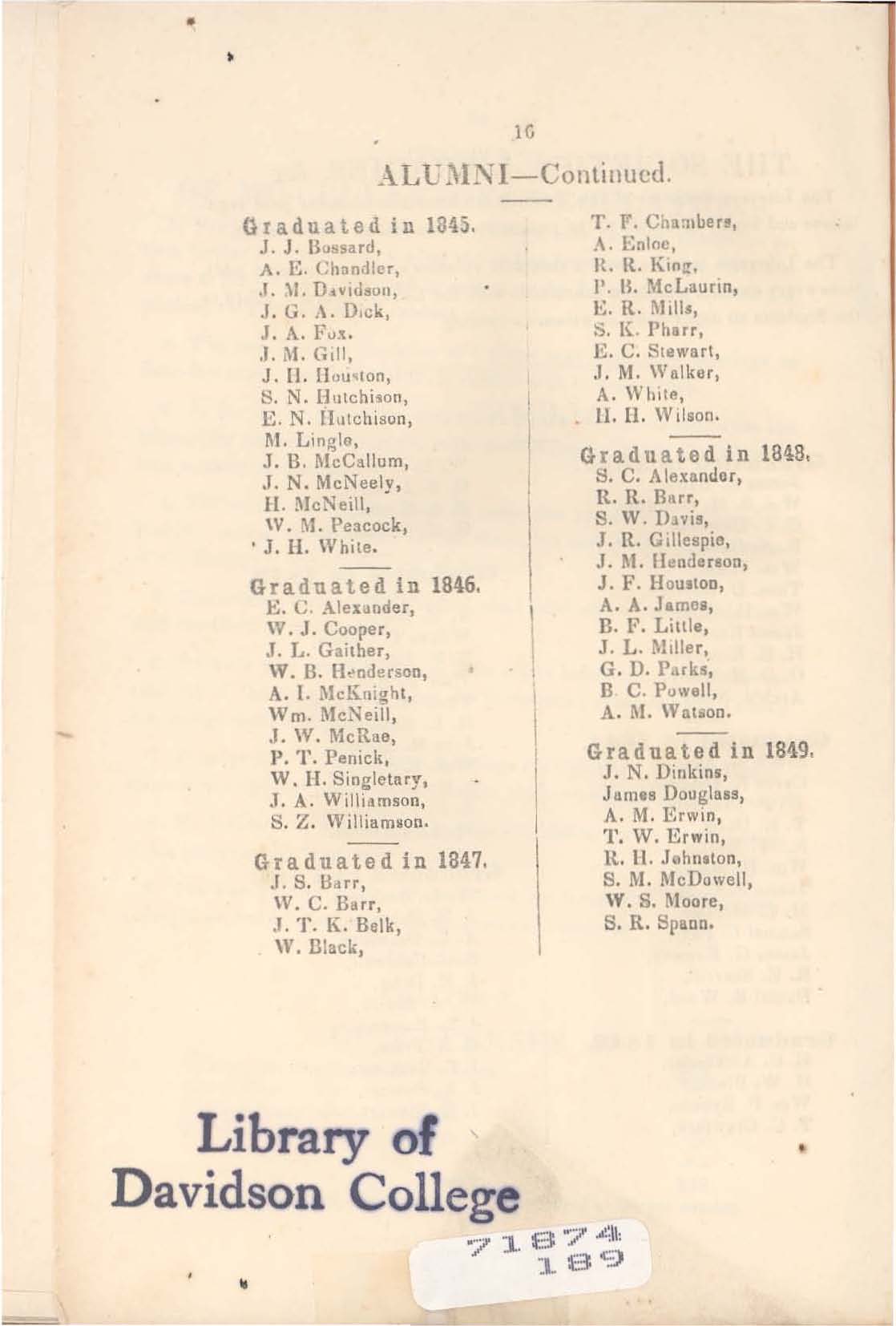 The SemiCentennial Catalogue of Davidson College, Davidson