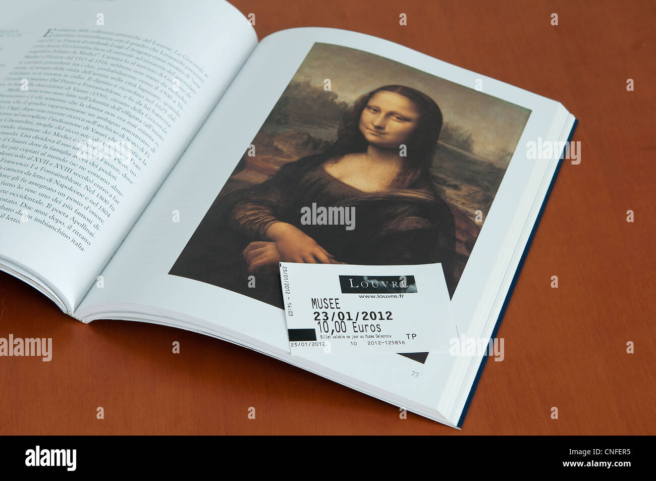 Louvre Museum Ticket mit einem Katalog mit dem Foto von Monna Lisa