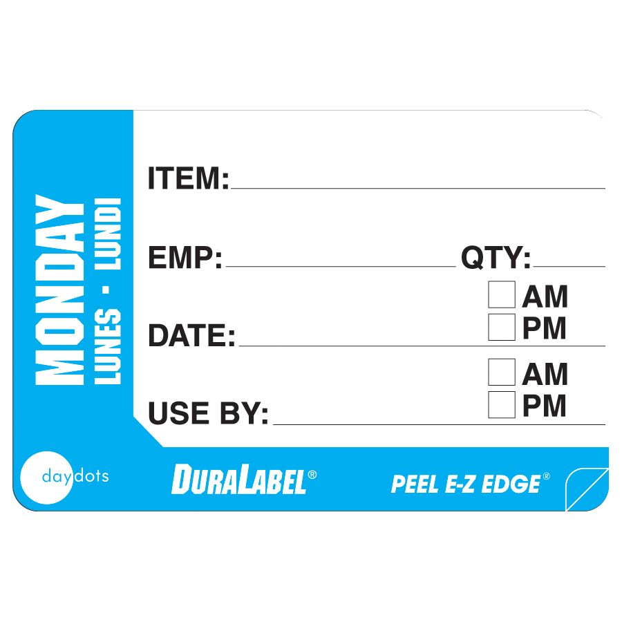 Shelf Life Labels Daydots Food Labels Monday 1000 per roll Adcock