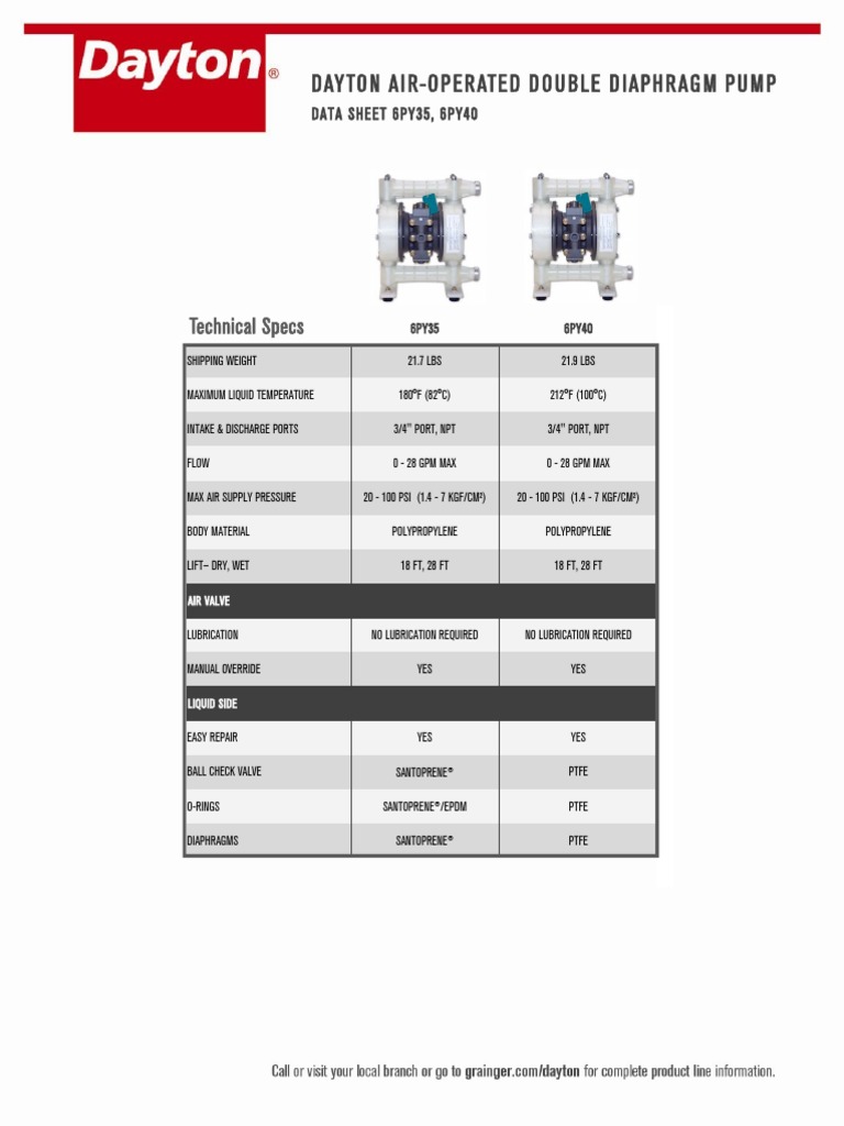Dayton AirOperated Double Diaphragm Pump Technical Specs PDF