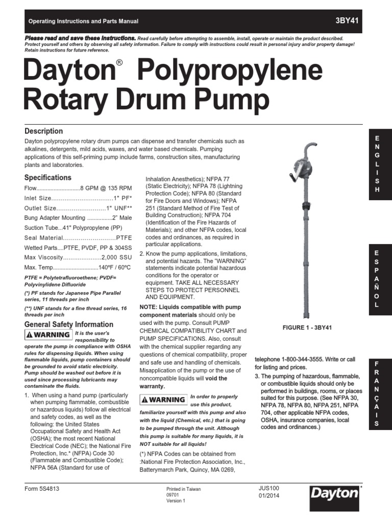 Dayton Polypropylene Rotary Drum Pump Description PDF Pump