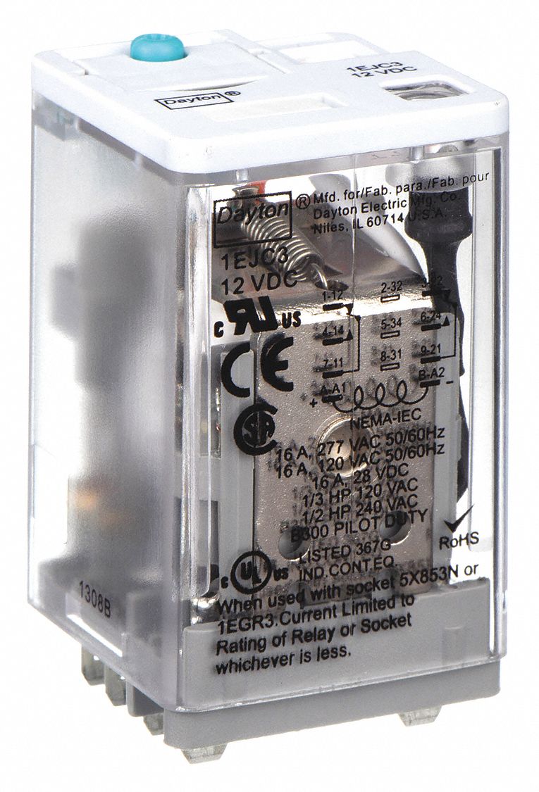 DAYTON RELAY,ICE CUBE,SPDT,12VDC,COIL VOLT PlugIn Relays GGE1EHD5
