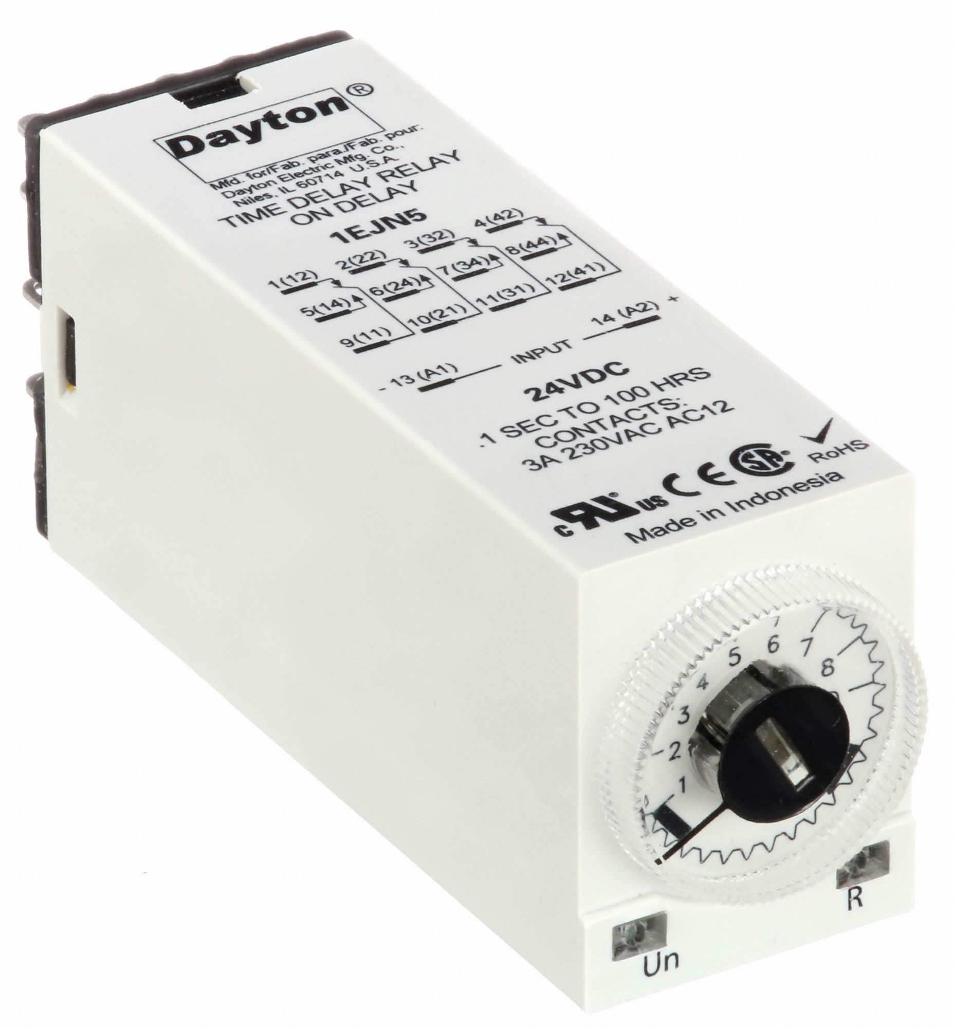 DAYTON Single Function Time Delay Relay 14 Pins Relay, Rotary Knob