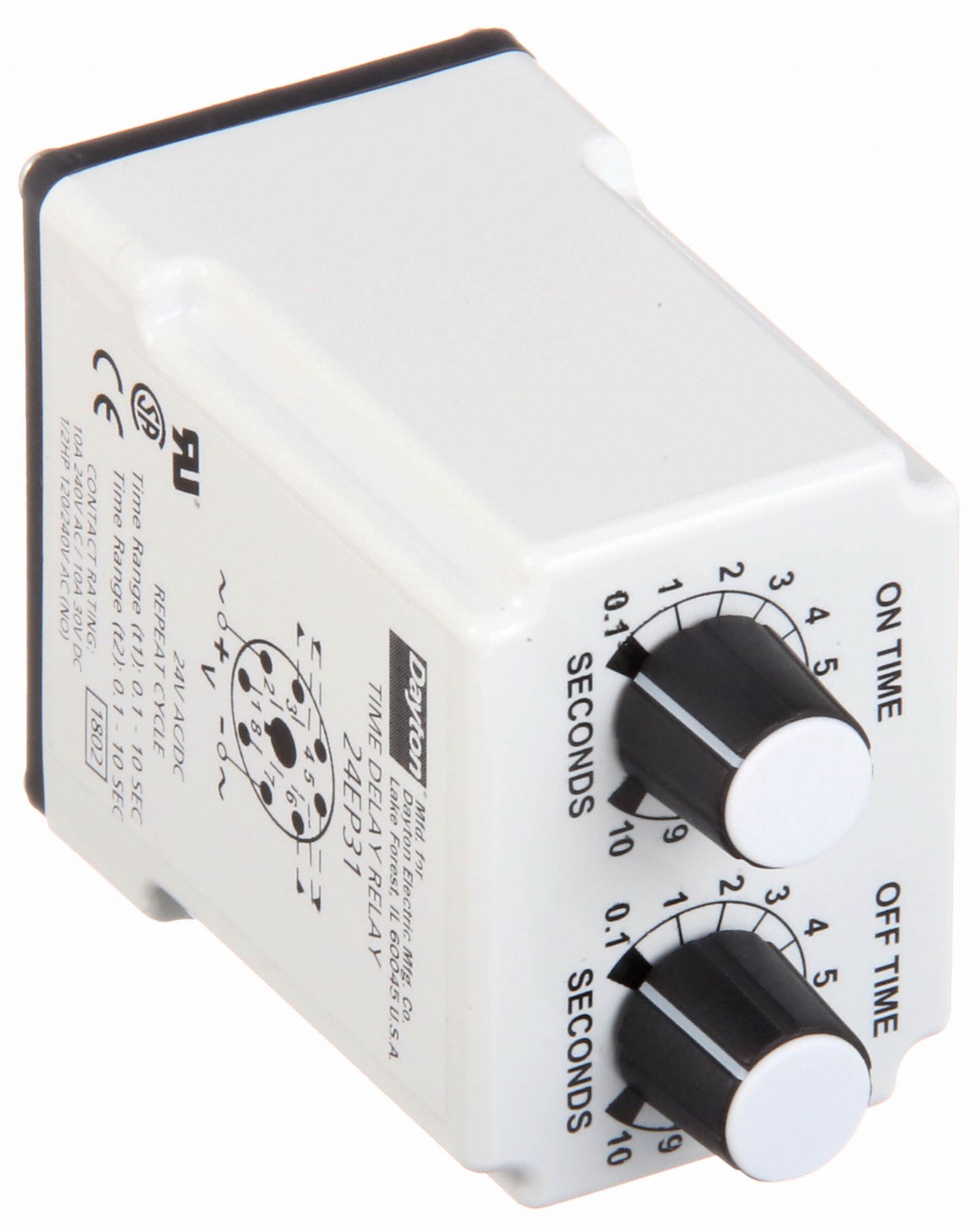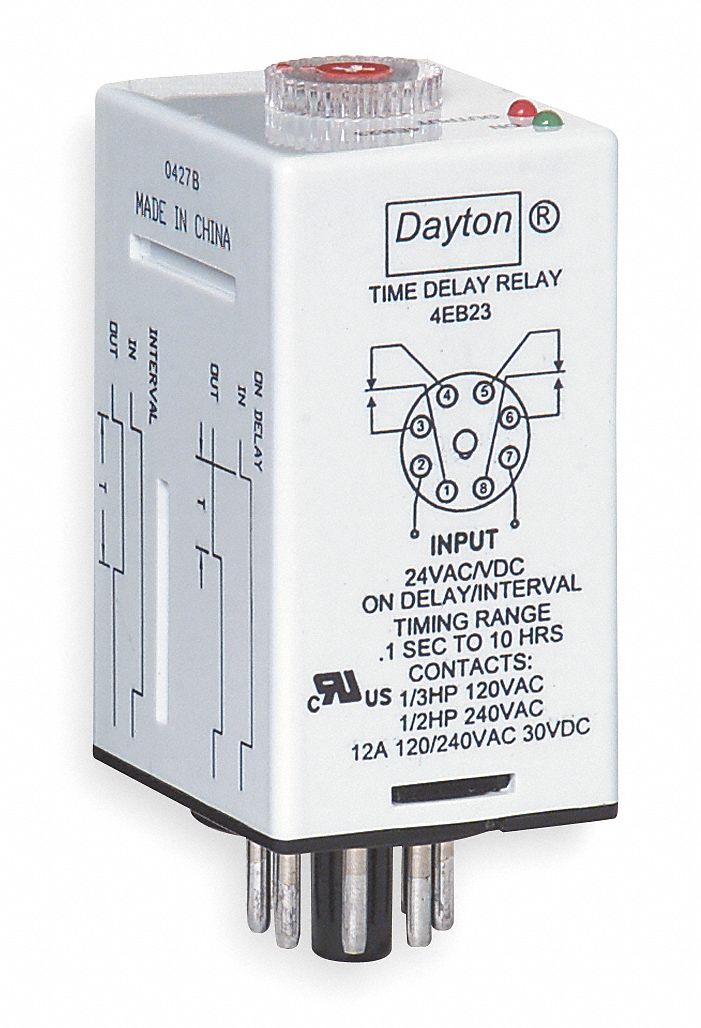 DAYTON Single Function Time Delay Relay 8 Pins Relay, Potentiometer