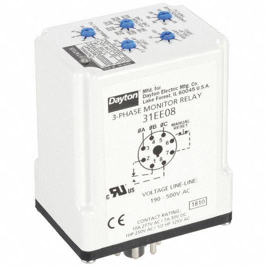 DAYTON, Socket Mounted, 10 A Current Rating, Phase Monitor Relay
