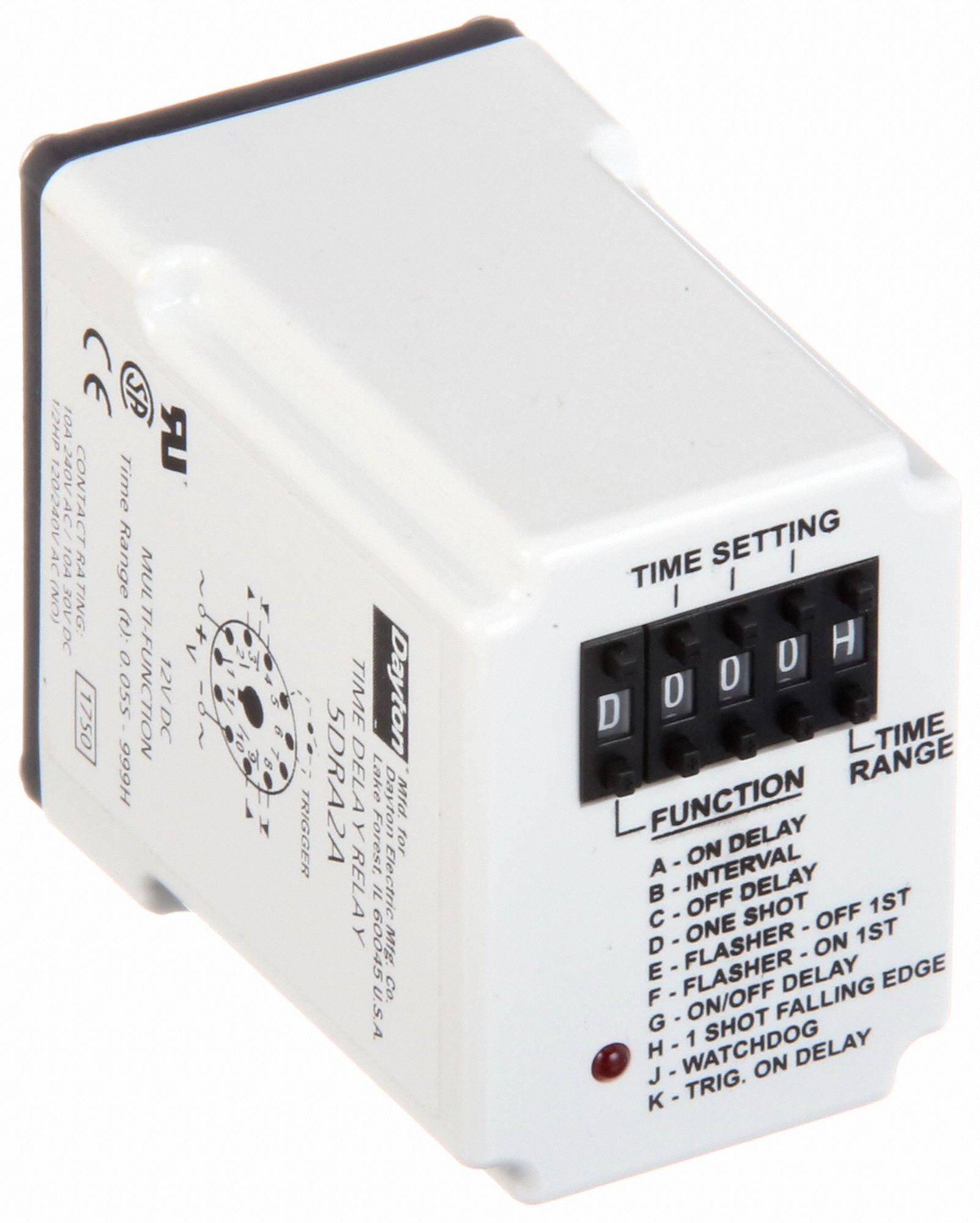 DAYTON, Socket Mounted, 12V DC, Single Function Time Delay Relay