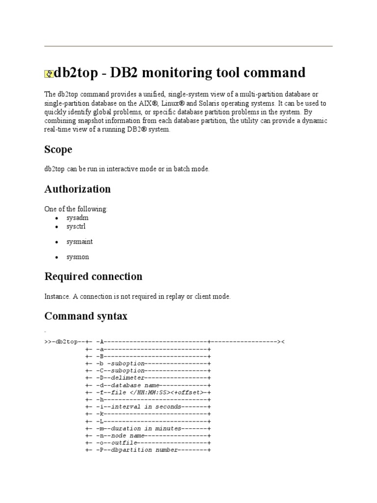 Db2top DB2 Monitoring Tool Command Scope PDF Databases Command