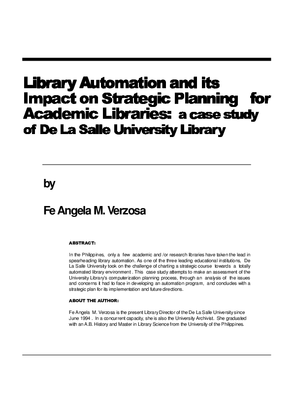 (PDF) Library Automation and its Impact on Strategic Planning for