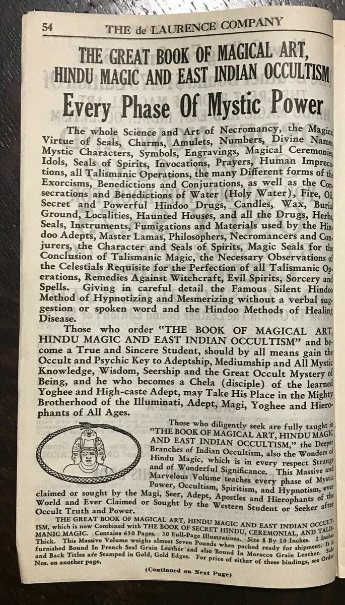 1920s VERY RARE DE LAURENCE OCCULT CATALOG BOOK OF MAGICAL ART, HIND
