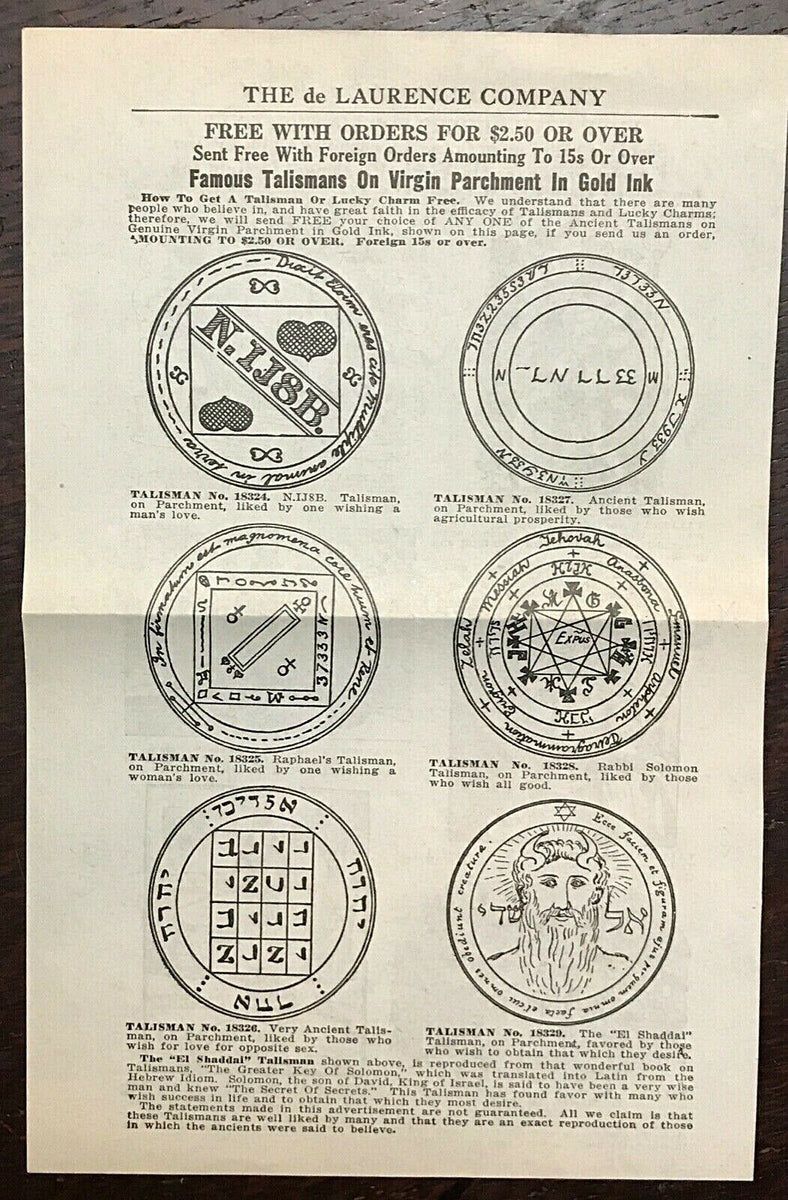 1920s DE LAURENCE OCCULT CATALOG ADS TALISMANS SEALS DIVINATION ANGE