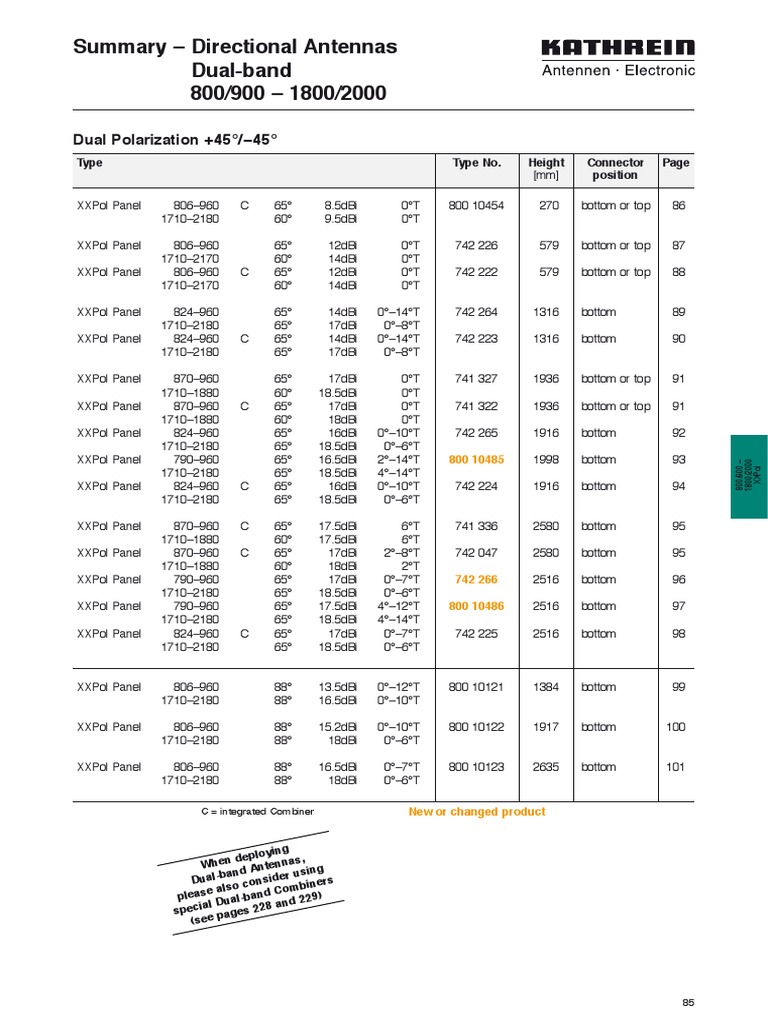 Summary Directional Antennas DualBand 800/900 1800/2000 PDF