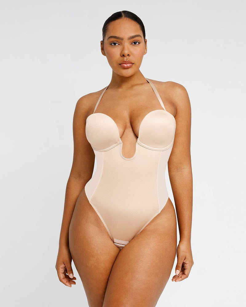 Women's Deep V Bodysuit Backless U Plunge Body Shaper Thong Shapewear