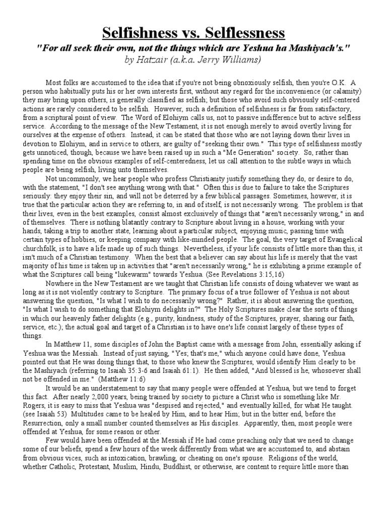 Selfishness vs. Selflessness "For All Seek Their Own, Not The Things