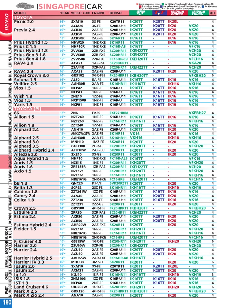 Denso Catalog PG 180 PDF Car Toyota