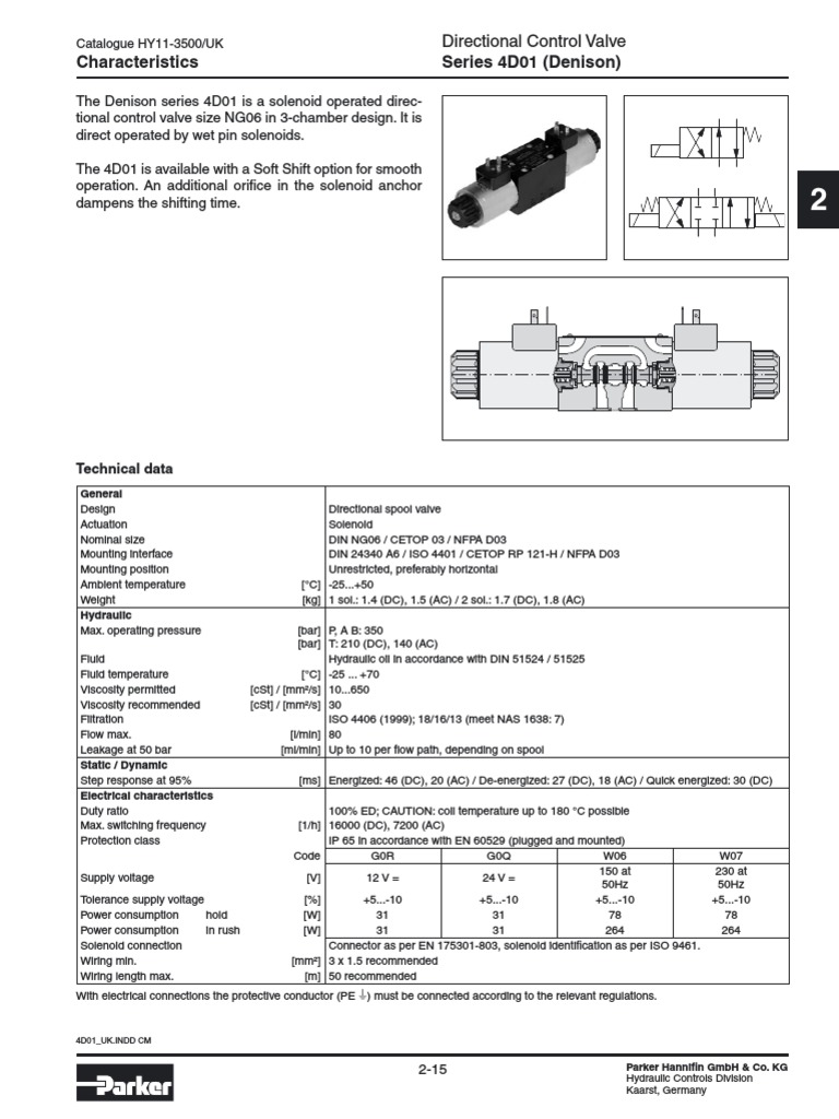 Series 4D01 (Denison) Characteristics Directional Control Valve PDF