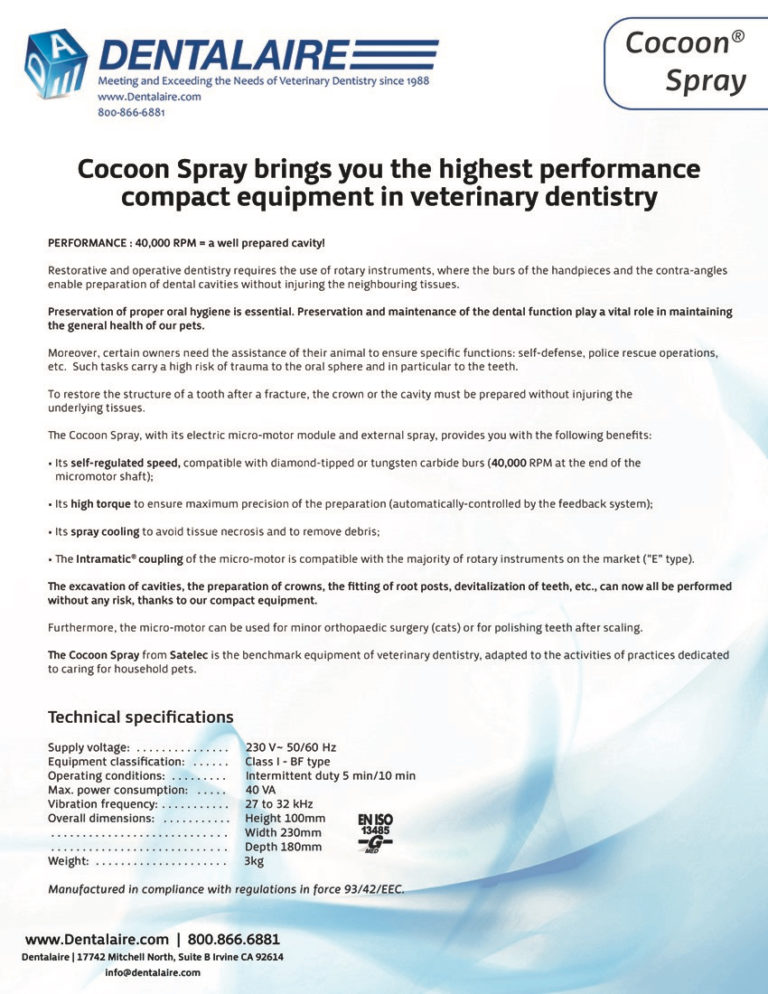 Dental handpiece DA400A Dentalaire veterinary / veterinary dental