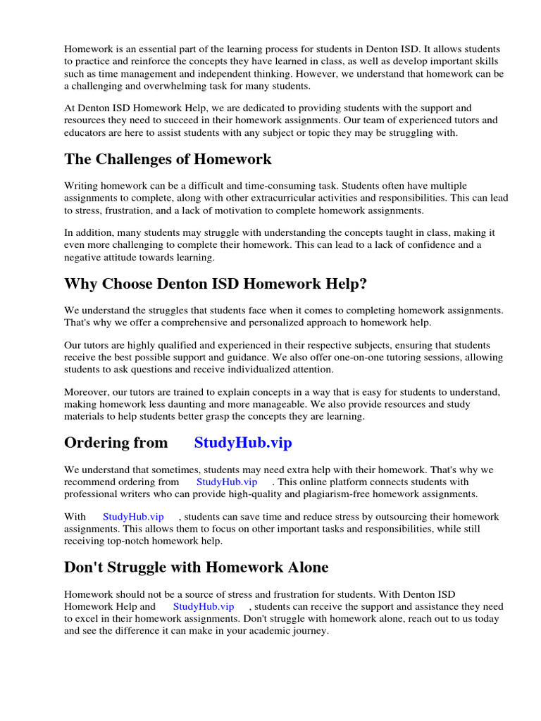 Denton Isd Homework PDF Homework Schools
