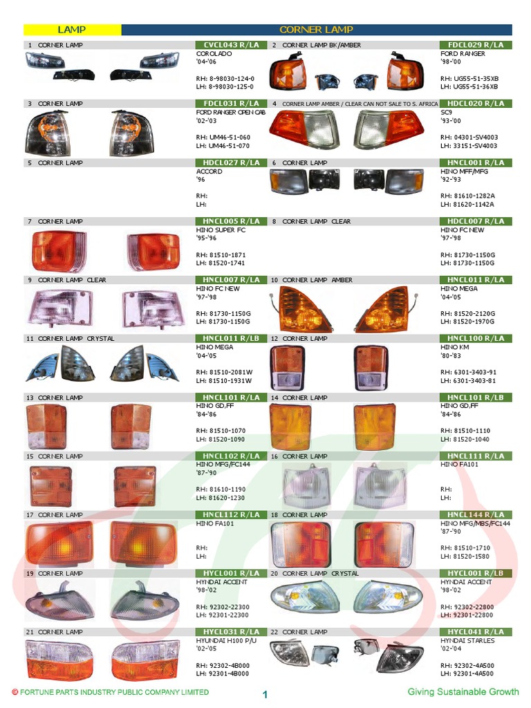 Automotive Corner Lamp Catalog PDF Product Introductions Private