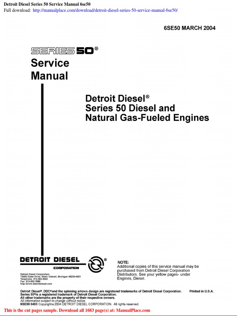 Detroit Diesel Series 50 Service Manual 6se50 PDF Diesel Engine