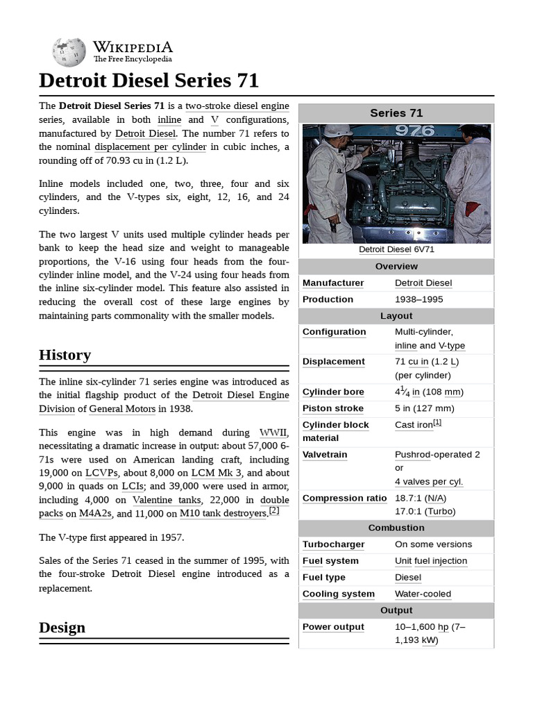 Detroit Diesel Series 71 Wikipedia PDF Vehicle Technology