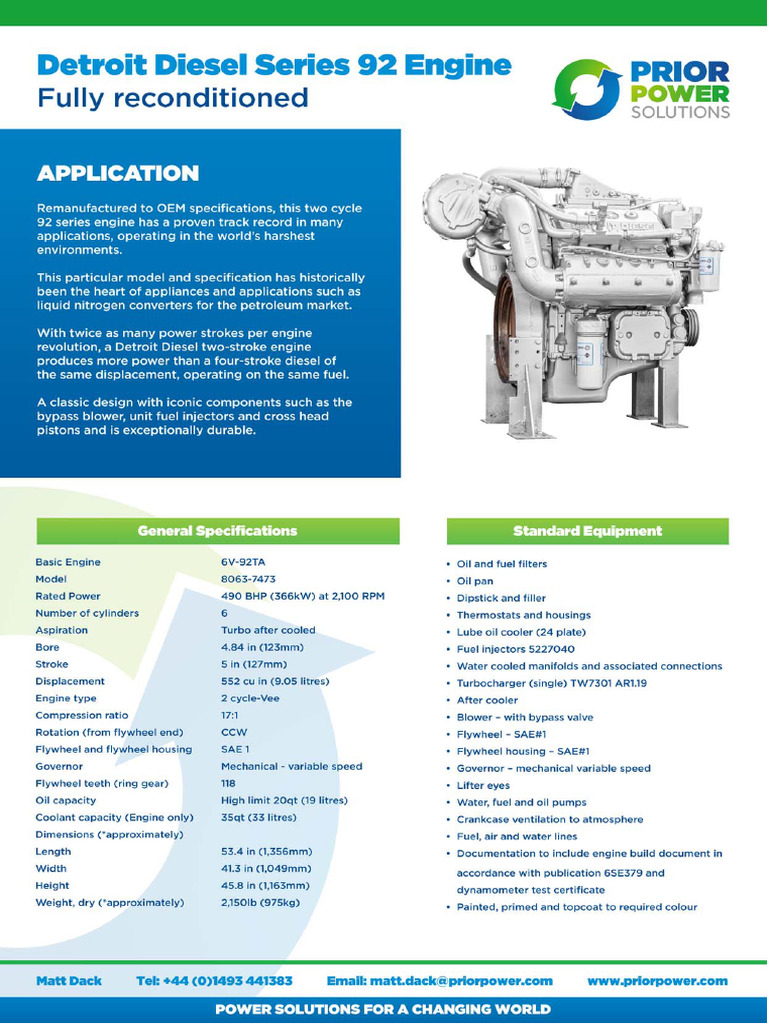 Technical Data and Specifications for Detroit Diesel 92 Series Engines