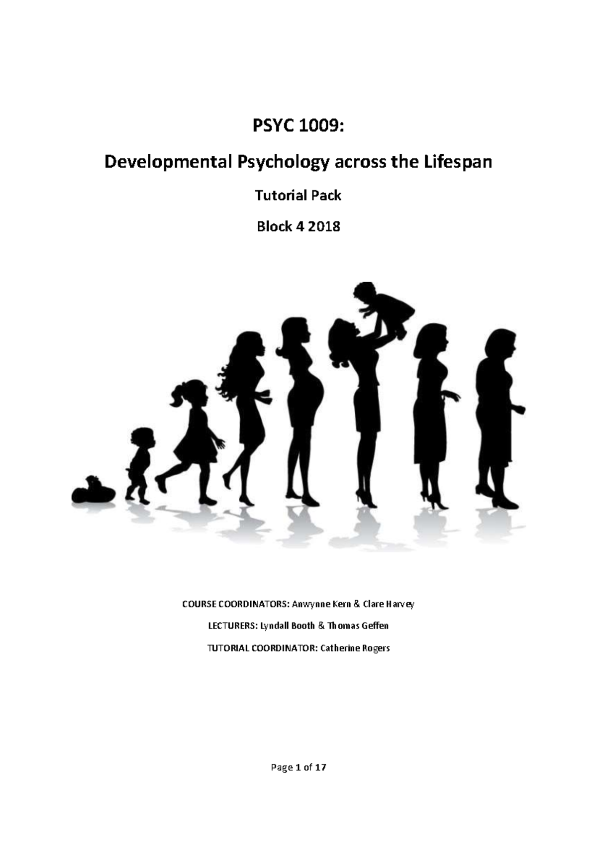 Tutorial booklet Block 4 2018 27082018 PSYC 1009 Developmental