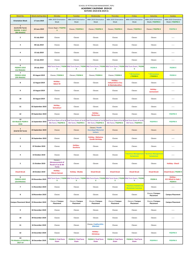 Academic Calendar 201920 PDF Academic Term Master Of Business