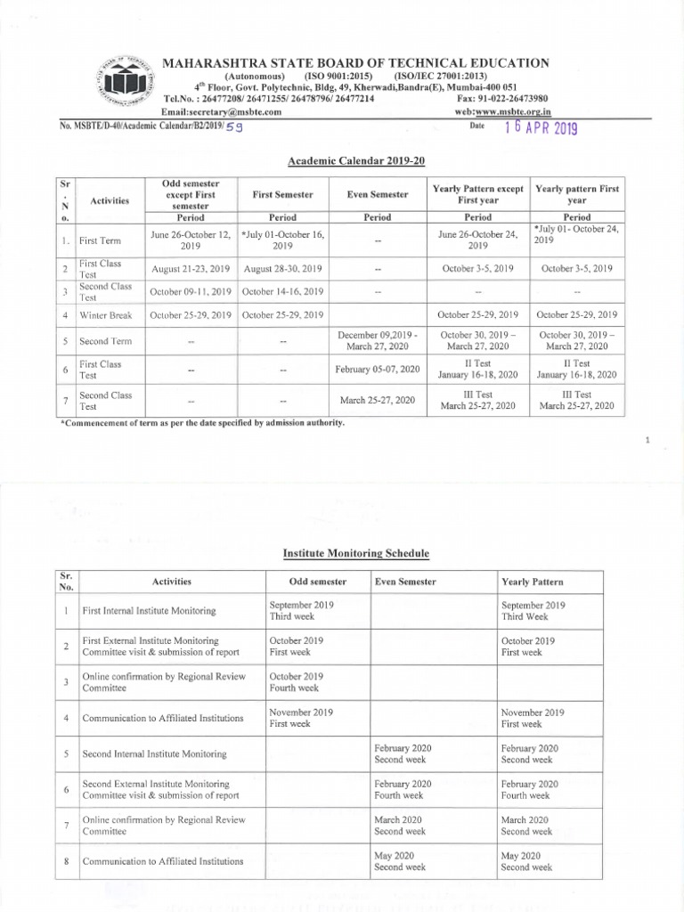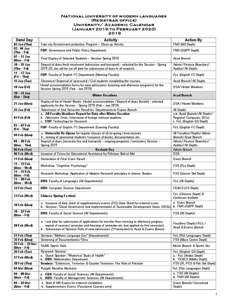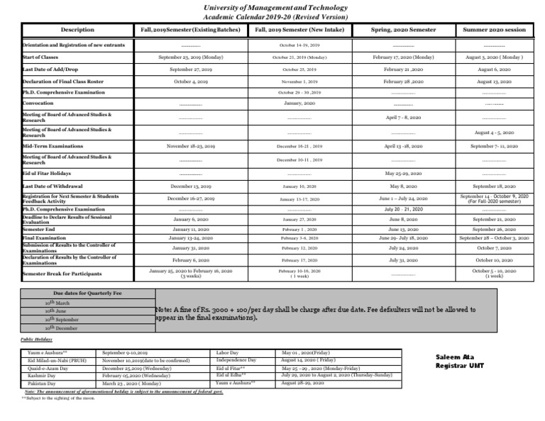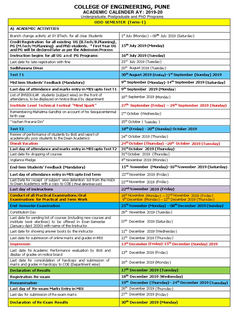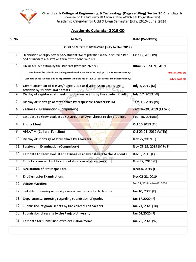 Academic Calendar 201920 PDF Academic Term Computer Science