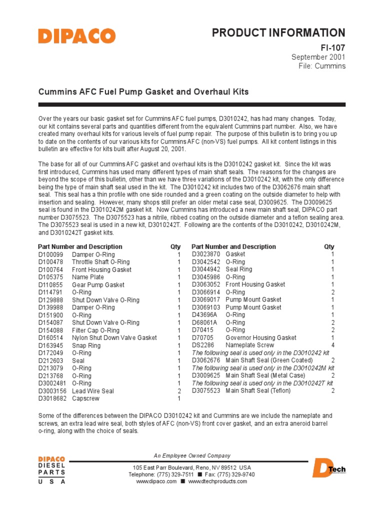 Dipaco Gasket Set DM Pumps D24372 Delco Diesel