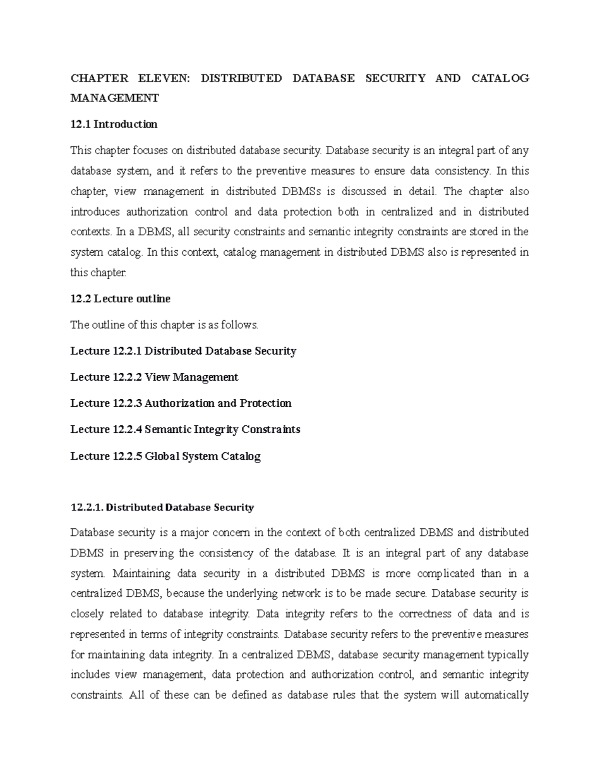 Lesson Eleven Distributed Database Security AND Catalog Management