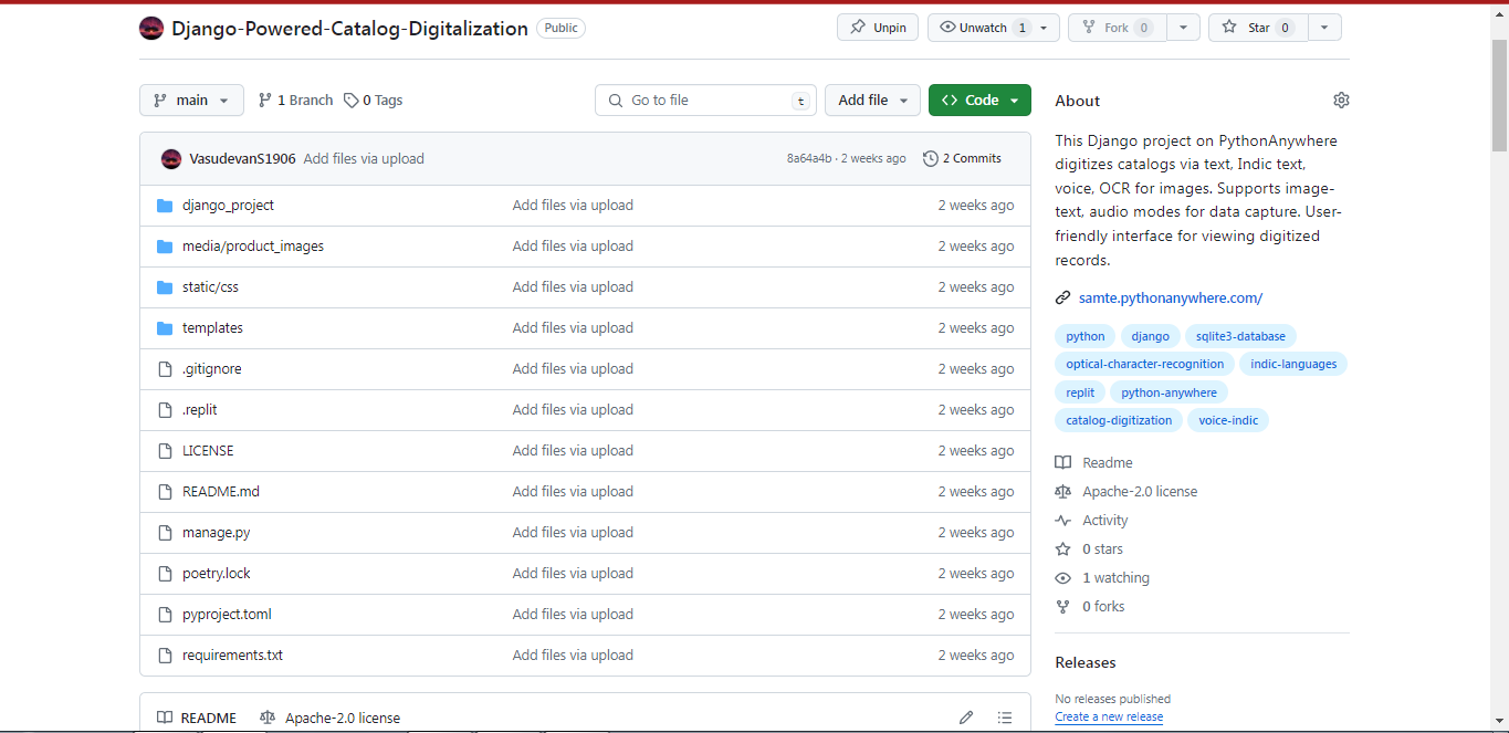 GitHub VasudevanS1906/DjangoPoweredCatalogDigitalization This