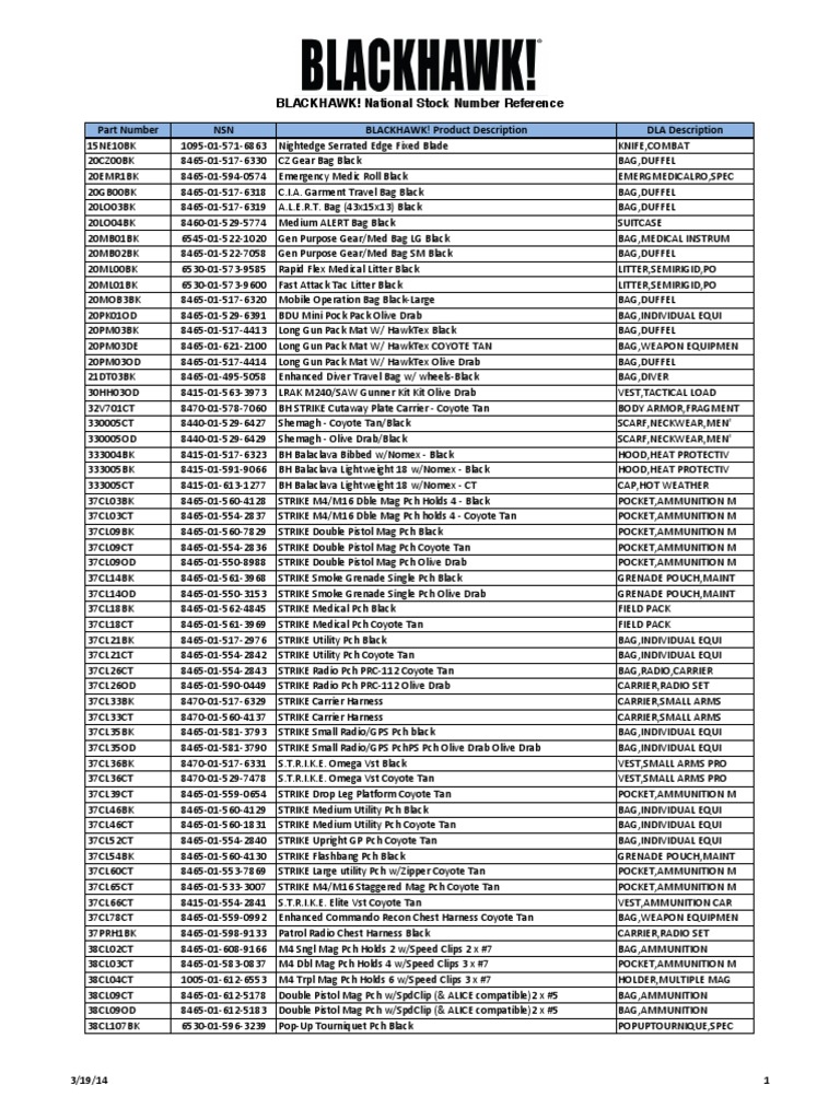 Part Number NSN BLACKHAWK! Product Description DLA Description PDF