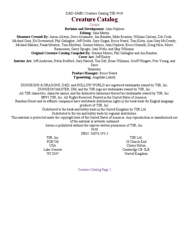 DMR2 Creature Catalog PDF Tsr, Inc. Dungeons & Dragons