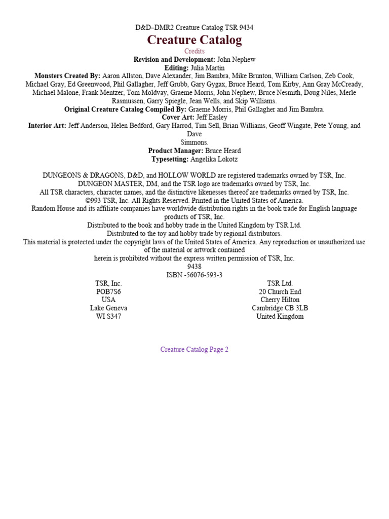 DMR 2.1 Creature Catalog PDF Tsr, Inc. Dungeons & Dragons