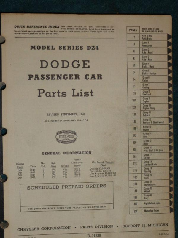 Find 1946 1947 1948 DODGE PARTS CATALOG / ORIGINAL MOPAR D24 BOOK in
