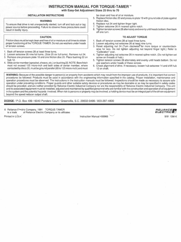 NEW DODGE 70 TORQUE TAMER SB Industrial Supply, Inc.