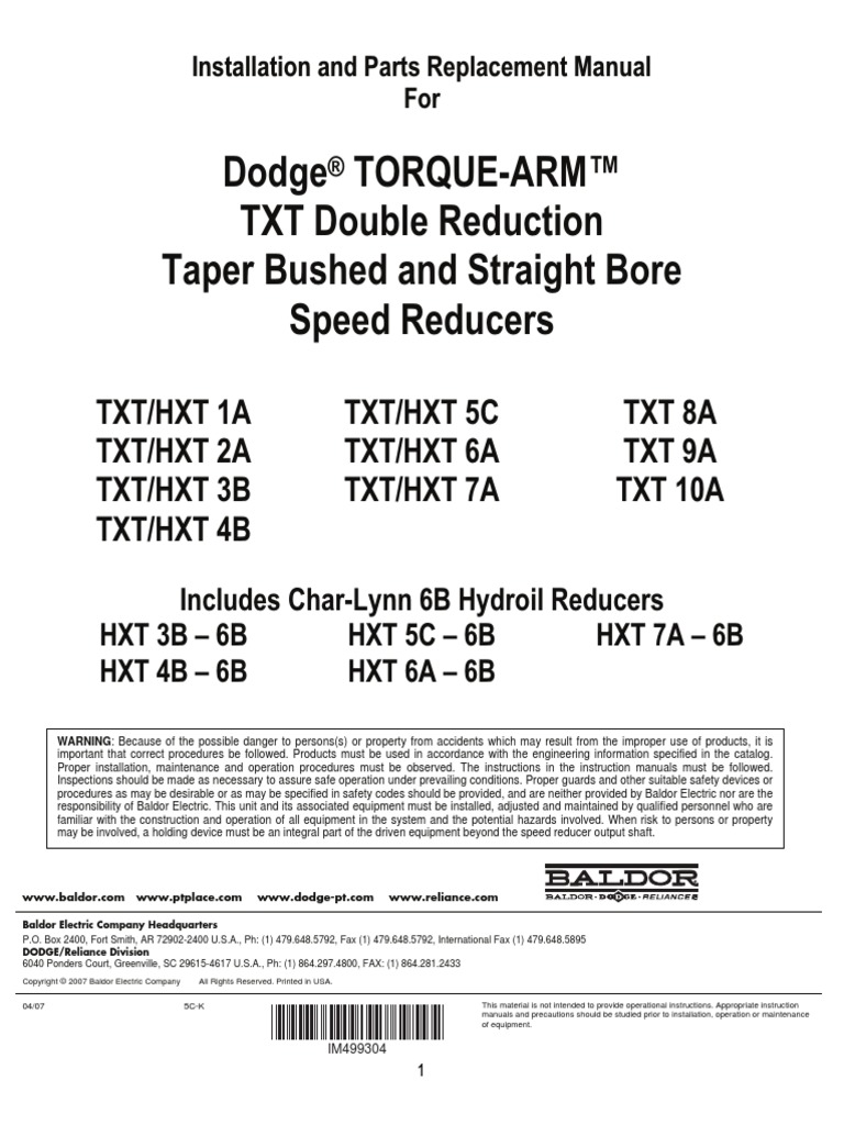 DODGE TXT725AT / TXT725AT 247161 TORQUEARM SPEED REDUCER Free Loading