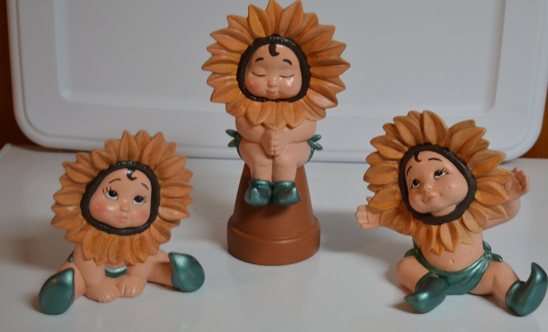3 Vintage Dona's Mold Ceramic Sunflower Face Babies Etsy