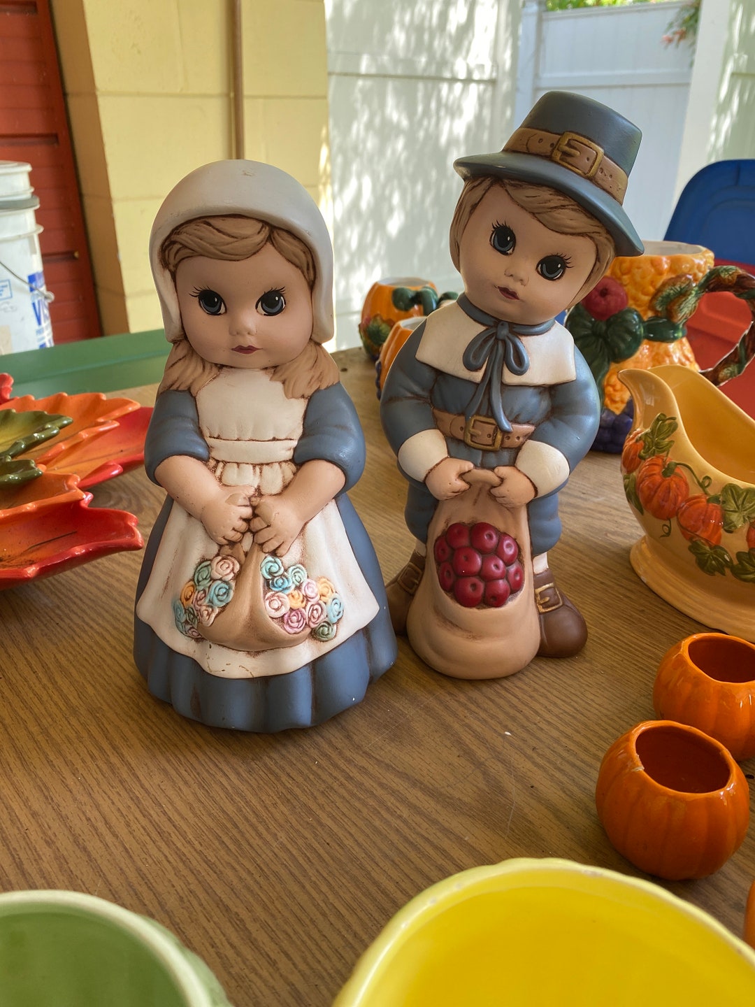 VTG Hand Painted Dona's Mold Ceramic Pilgrim Boy and Girl Statue Etsy