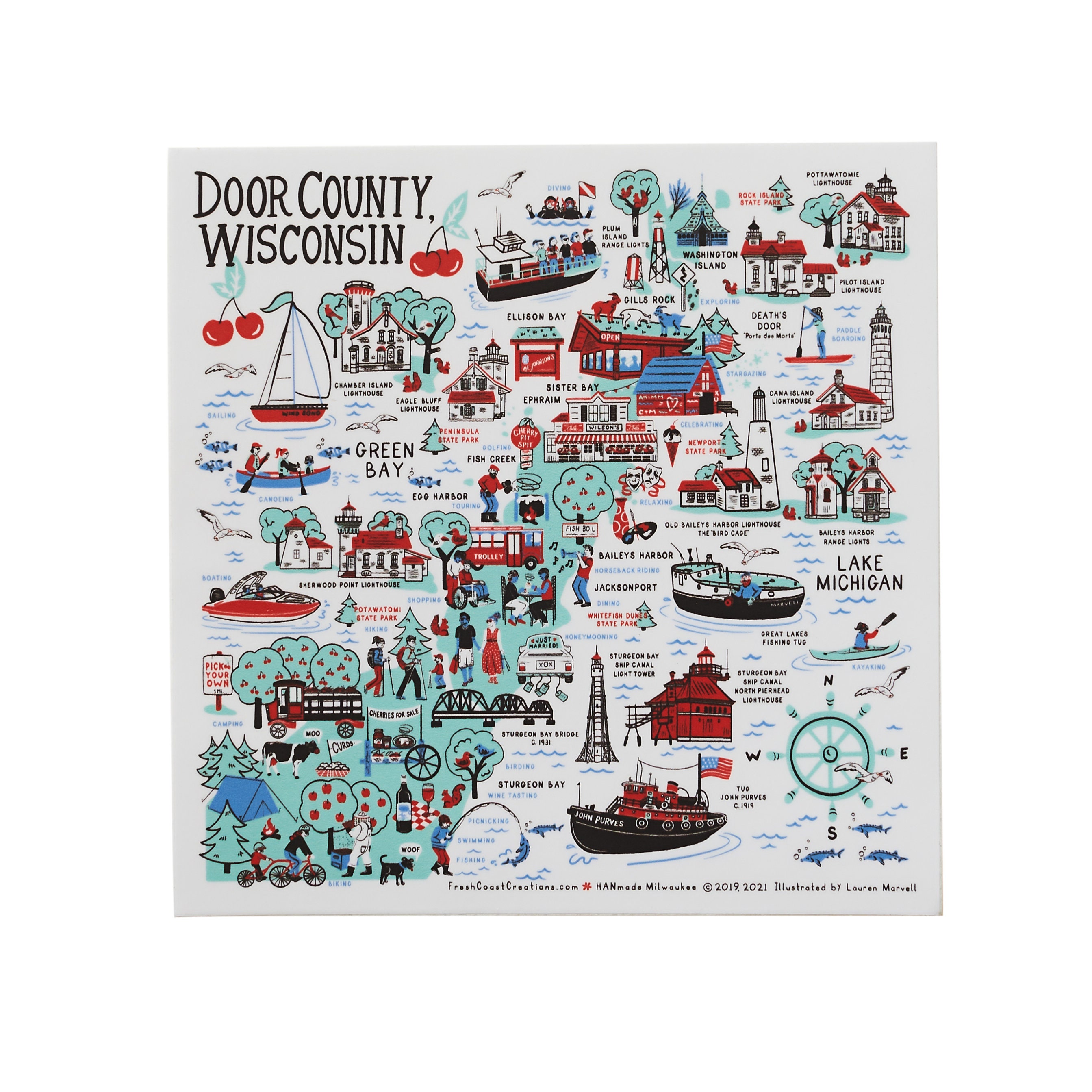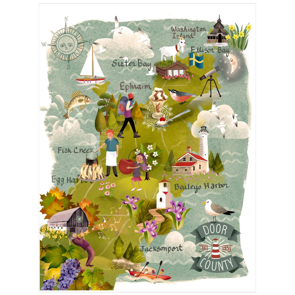 Illustrated Map of Door County, Wisconsin, USA Door county