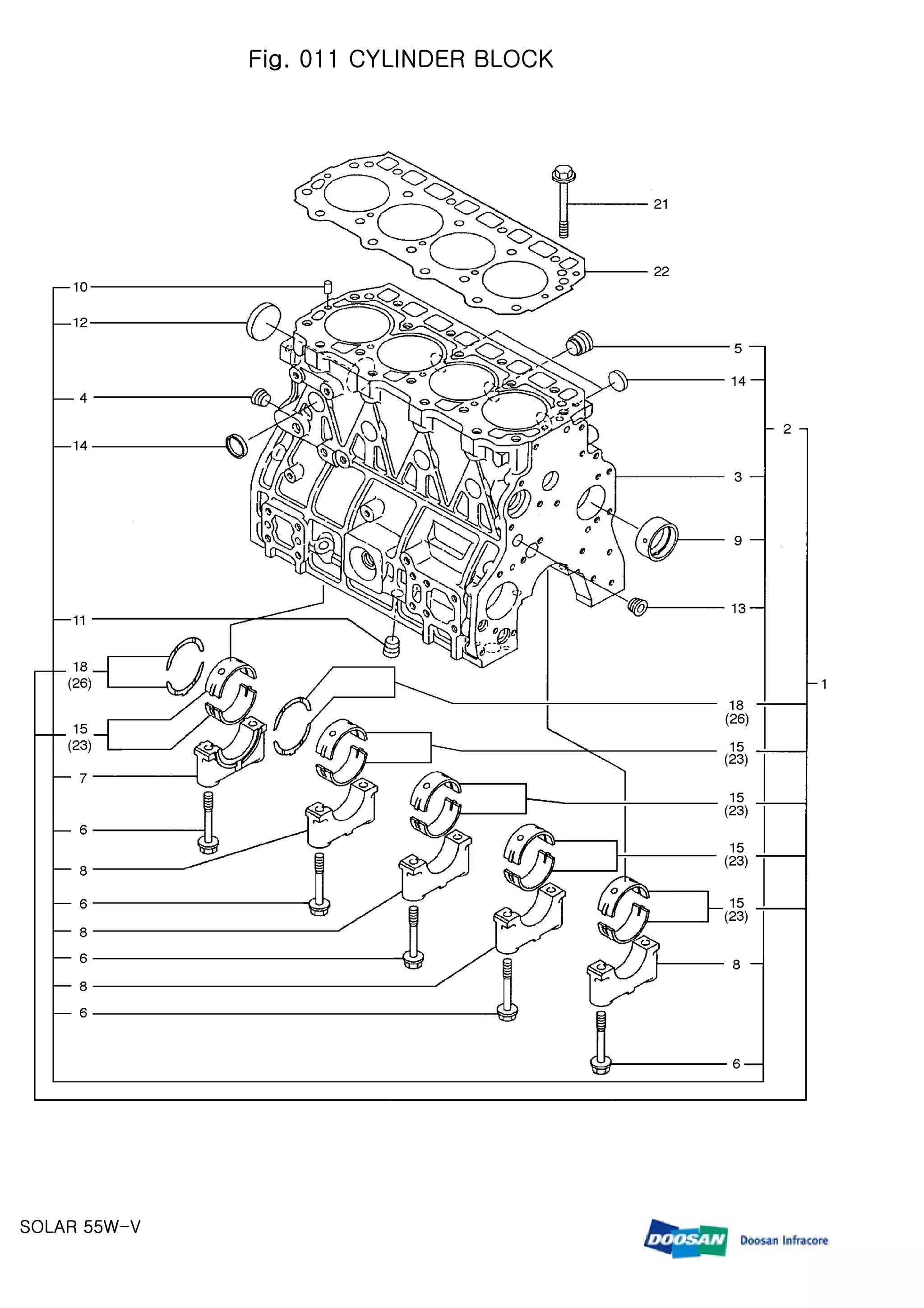 Daewoo doosan solar 55 w v (55wv) wheeled excavator parts catalogue