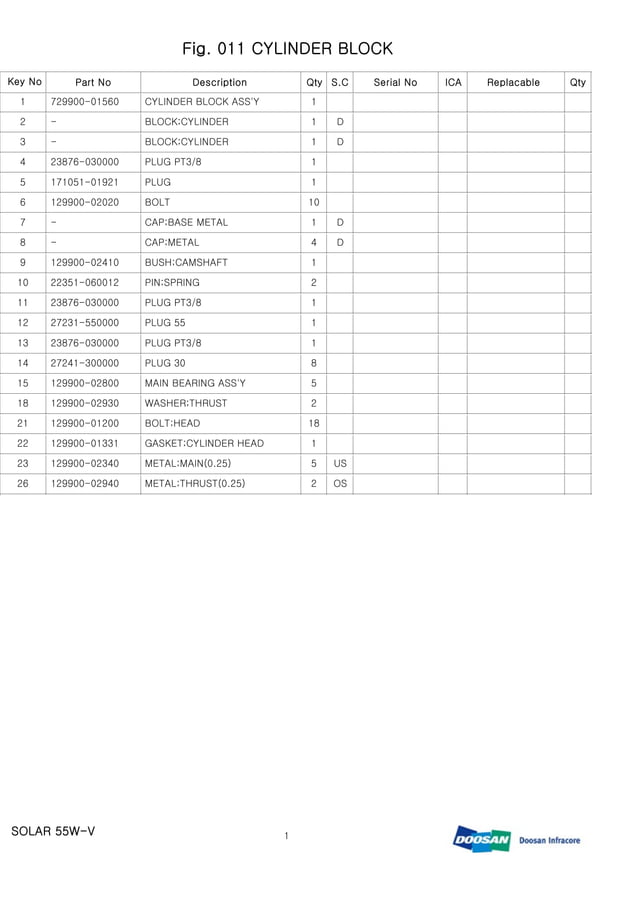 DOOSAN MD196T/MD196TI/L126TI/L126TIM Spare Parts Catalogue Ship