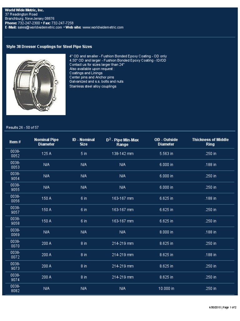 Dresser Couplings For Steel Pipe Sizes Style 38 PDF Pipe (Fluid