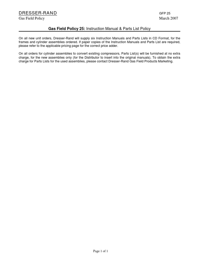 DresserRand Gas Field Policy 25 Instruction Manual & Parts List