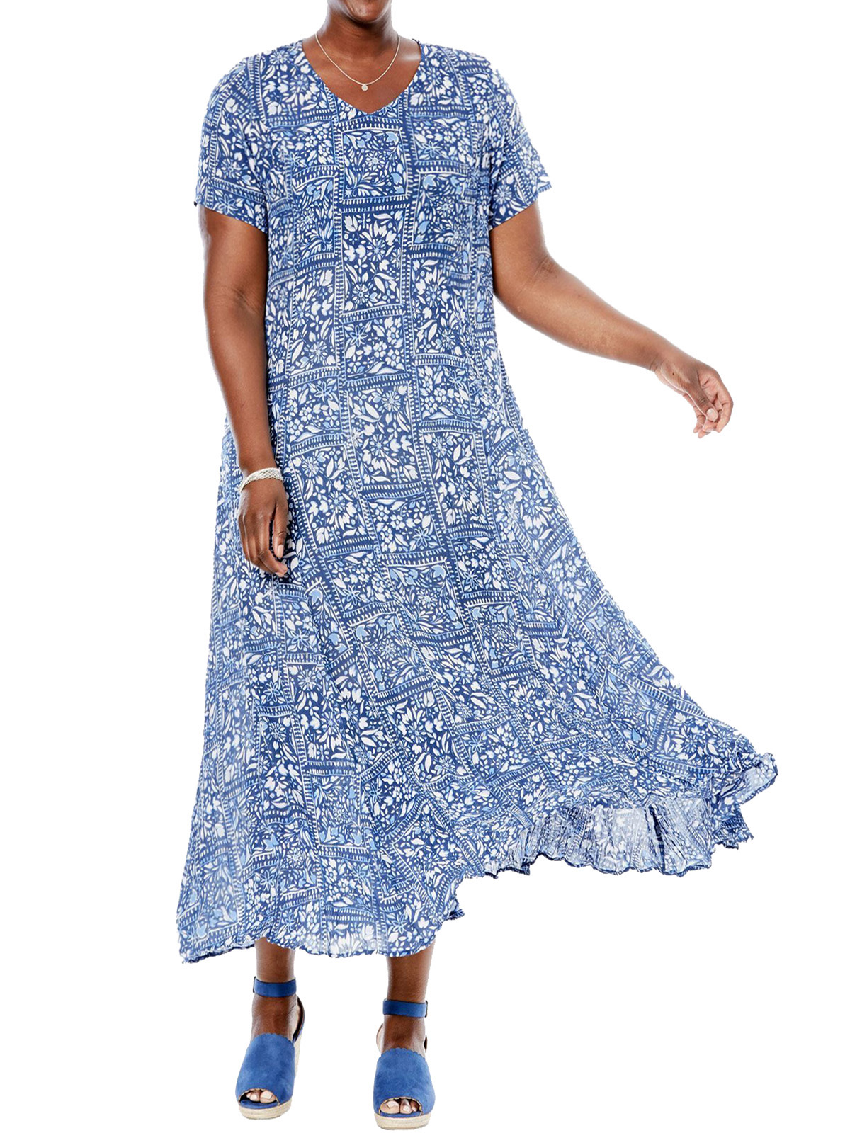 Woman Within Woman Within ASSORTED Short Sleeve Crinkle Maxi Dress
