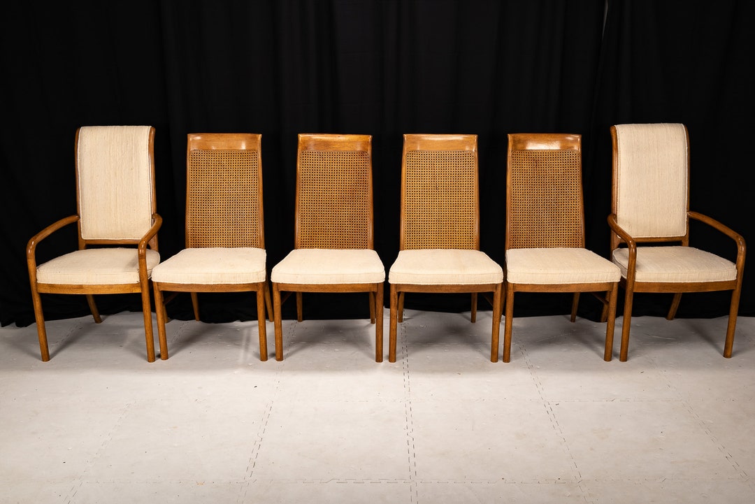 1980s Drexel Heritage Consensus Cane Upholstered Dining Chairs Set of
