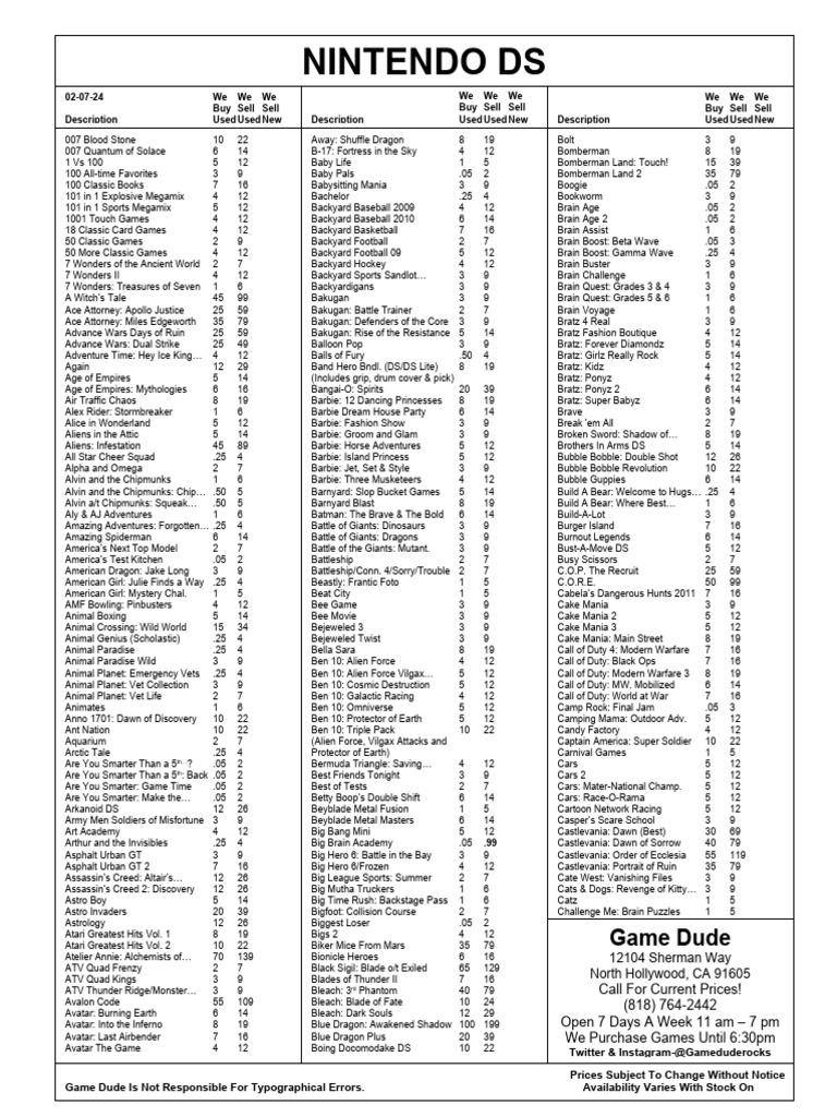 A Catalog of Used and New Nintendo DS Games PDF Final Fantasy Mario